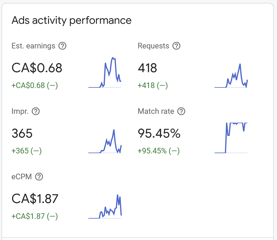 Ads ending up being pretty straightforward. About half way through the above timeline I added them using a simple react package to see what would happen. The two biggest worries being it would either be pointless or it would actively send users away.