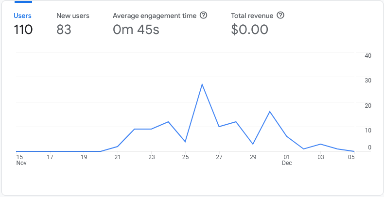 There are some very important positives to point out, however. My average engagement time effectively doubled. Getting people to come to your site and actually use it is the real goal here. This is a strong sign that the content was becoming more of a focus for my visitors versus the quick 'pop-ins' that were happening before.